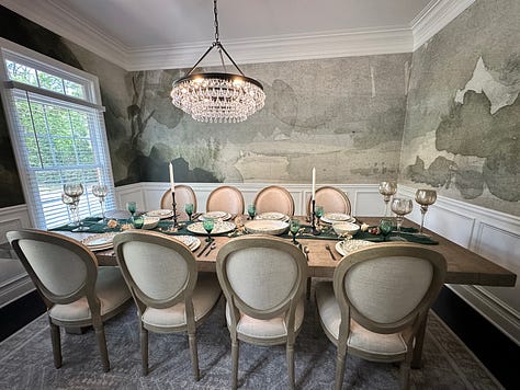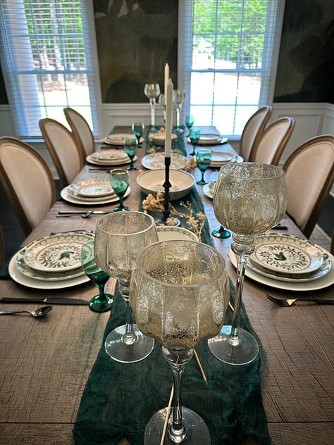 So this is what I’m working with so far. I still need to finalize what the full tablescape will look like, but we’re in a good place.