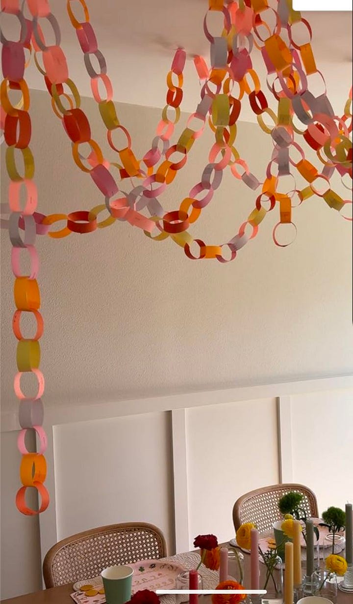 I am not the craftiest girl, but I can be when I want to be. So for decor this year, I’m attempting the viral paper chains to hang from our dining room light fixture and along the walls.